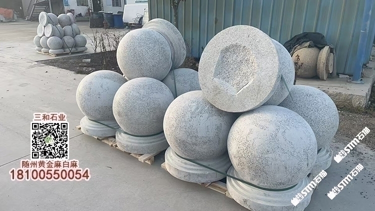 隨州白麻擋車石球路障圓球車止石白色麻石湖北黃金麻