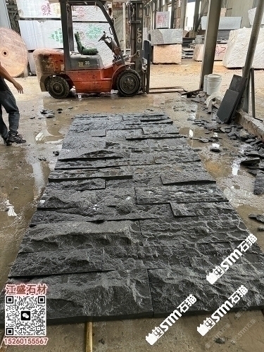 長泰芝麻黑自然面背景墻蘑菇石劈裂石長泰654小方塊